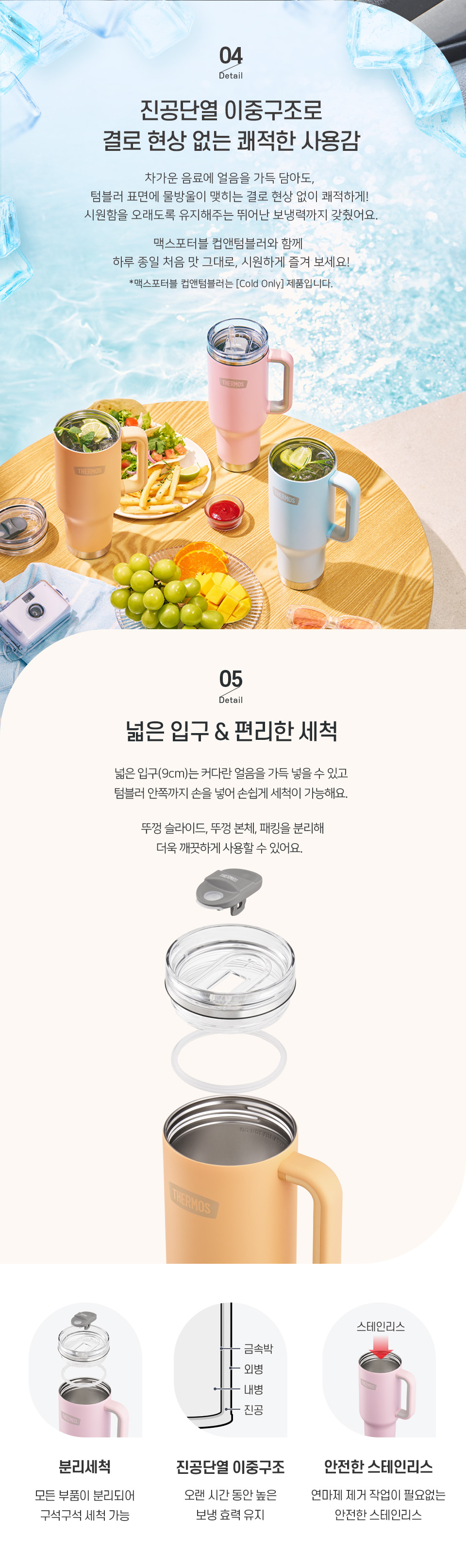 음료의 남은 양을 확인할 수 있는 투명하고 위생적인 뚜껑_넓은 입구(약 9cm)&편리한 세척 가능