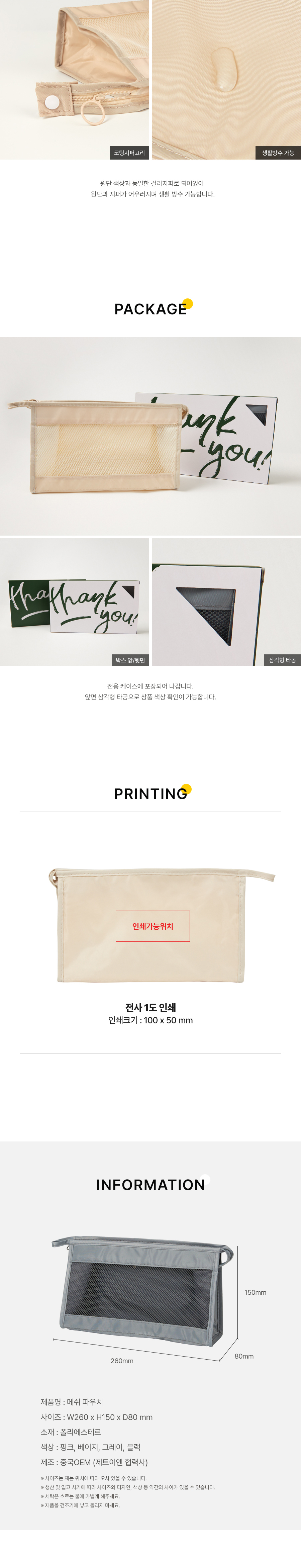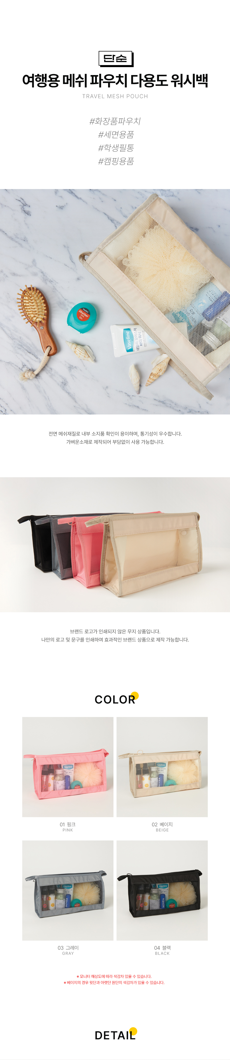 단순 여행용 메쉬 파우치 다용도 워시백