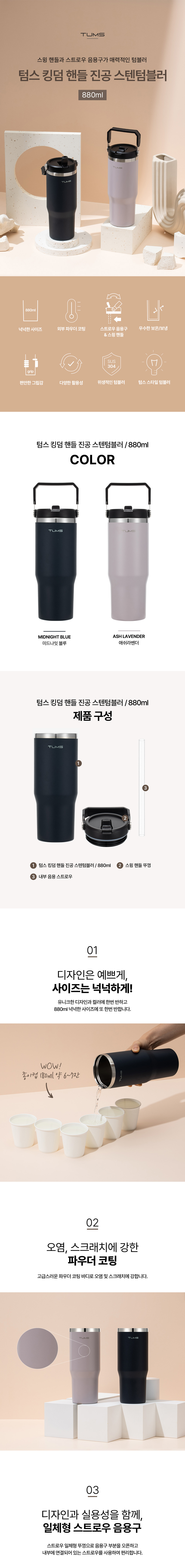 상품 이미지: 텀스 킹덤 핸들 진공 스텐텀블러 880ml