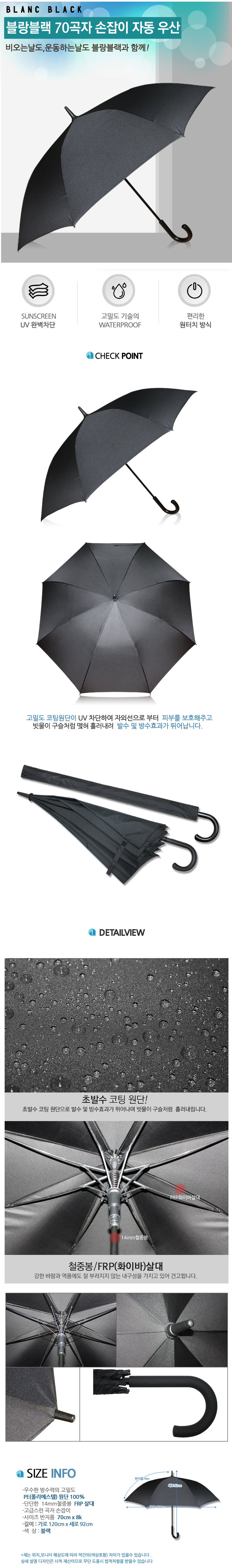 블랑블랙 70 곡자 손잡이 자동우산