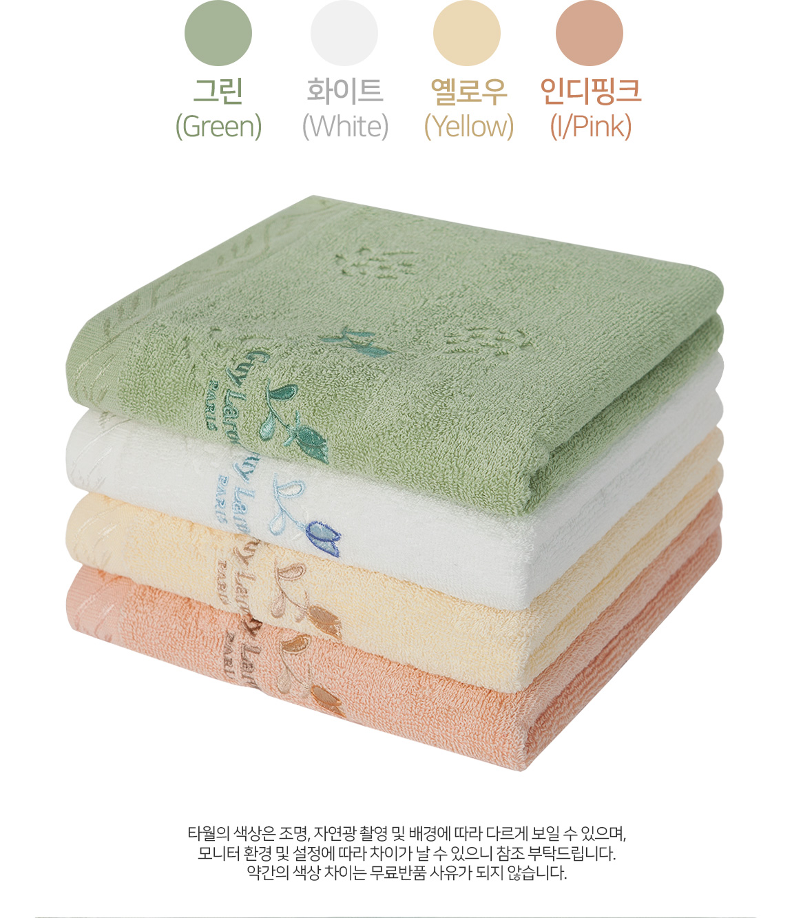 타올 브랜드자수위에 튤립 꽃모양의 자수로 처리