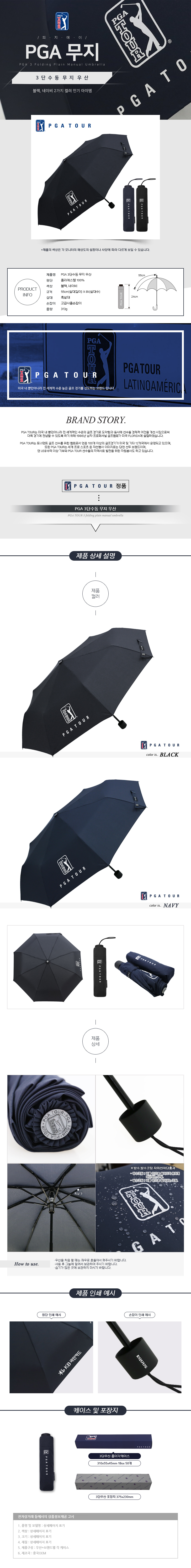 PGA 무지 3단수동우산