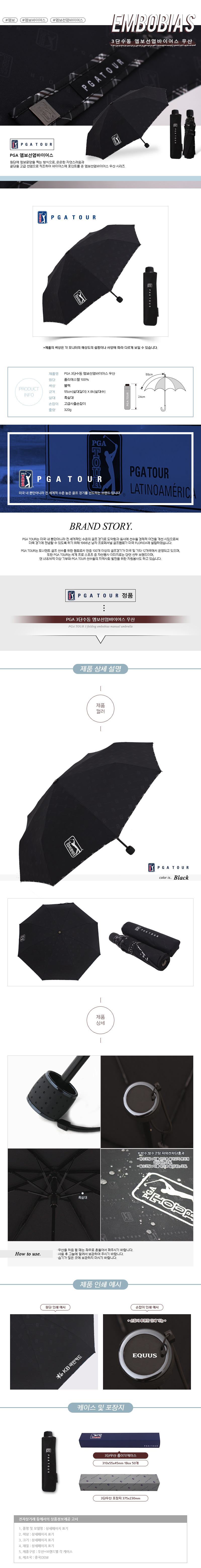 PGA 엠보선염바이어스 3단수동우산