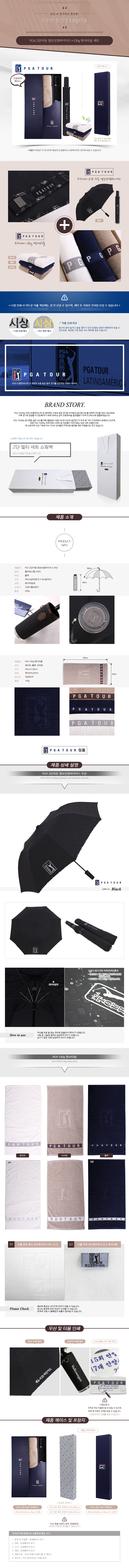 PGA 엠보선염바이어스 2단자동우산+130g면사타올세트