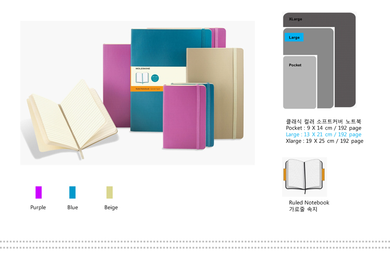 상품 이미지: 몰스킨소프트커버컬러노트(룰드)