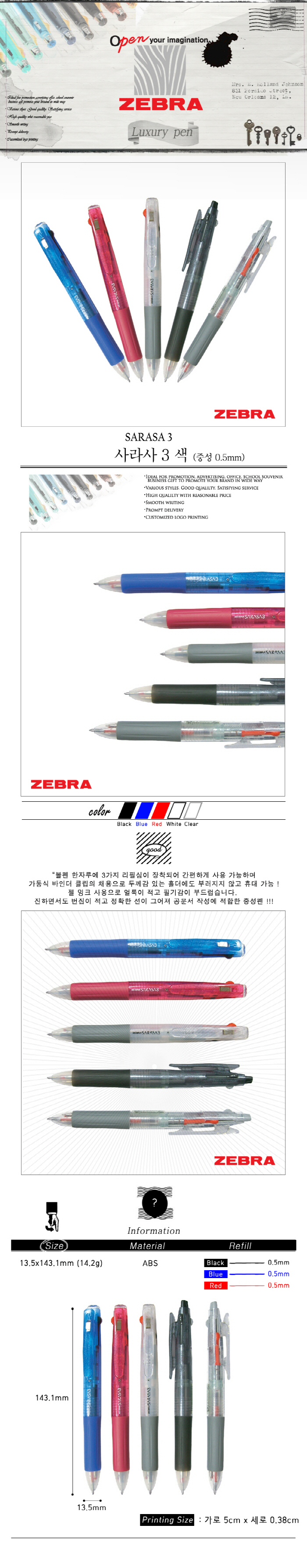 제브라 사라사3색