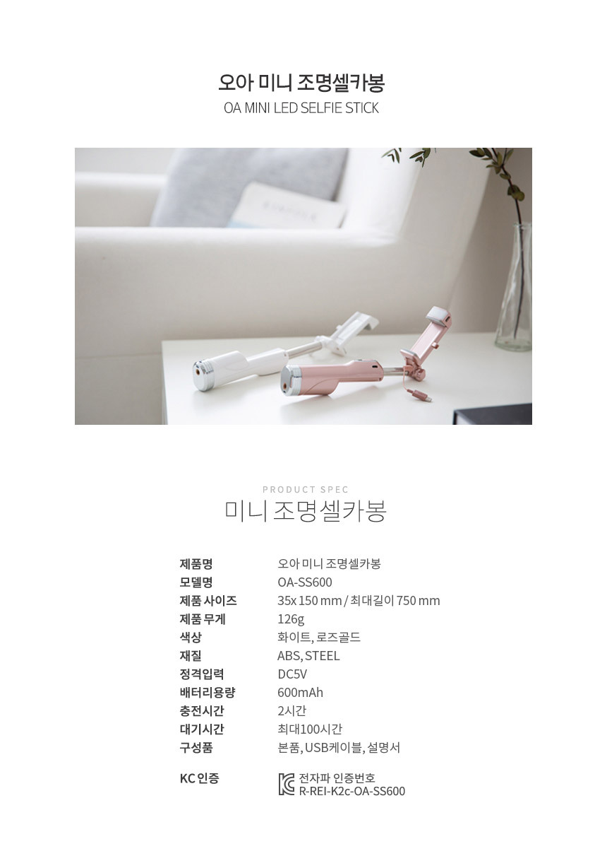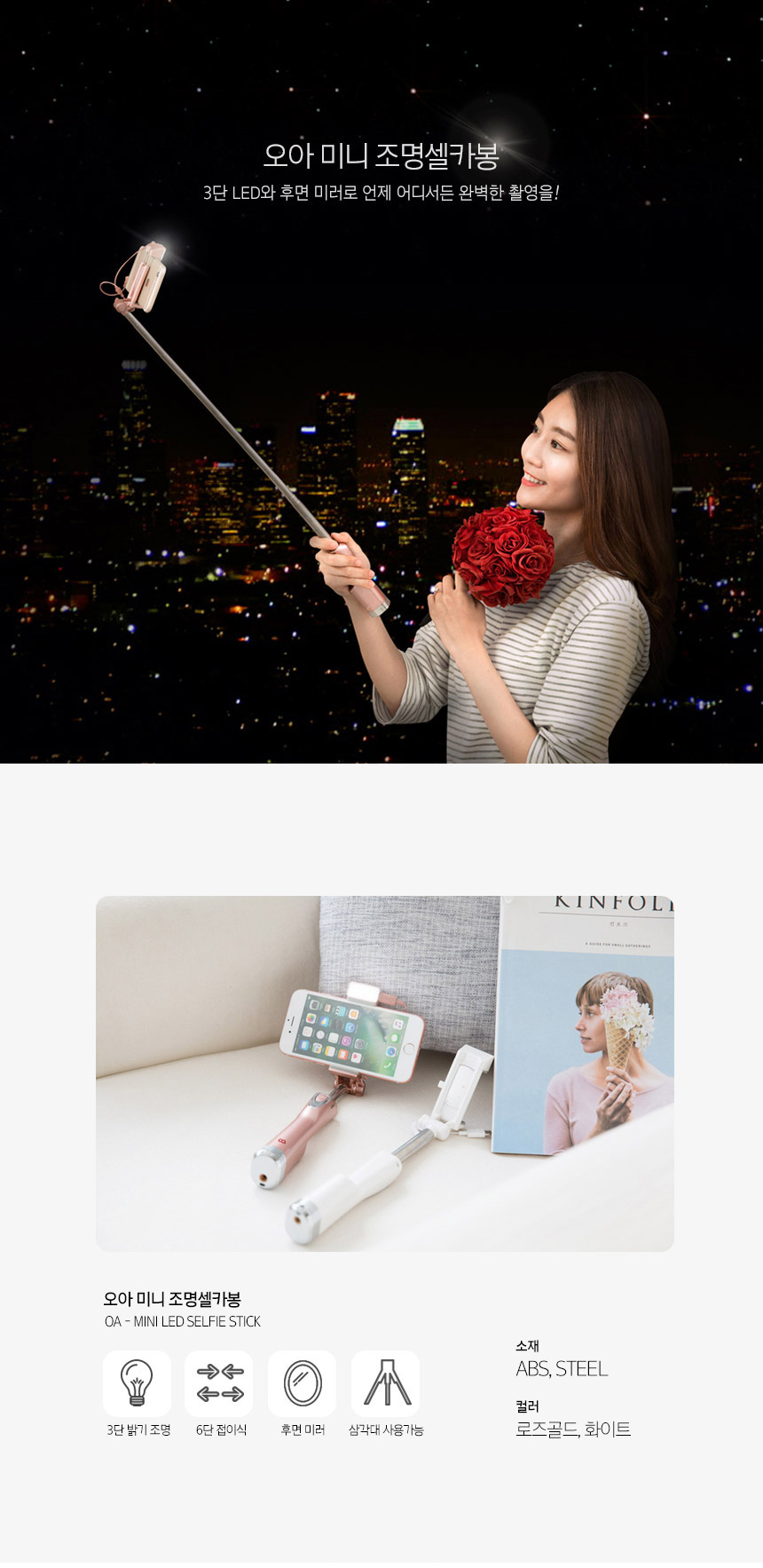 상품 이미지: 오아 미니 LED조명 셀카봉