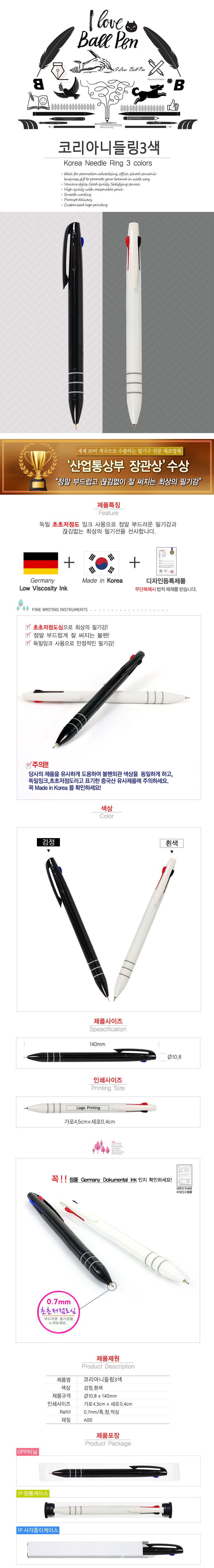 코리아니들링3색펜