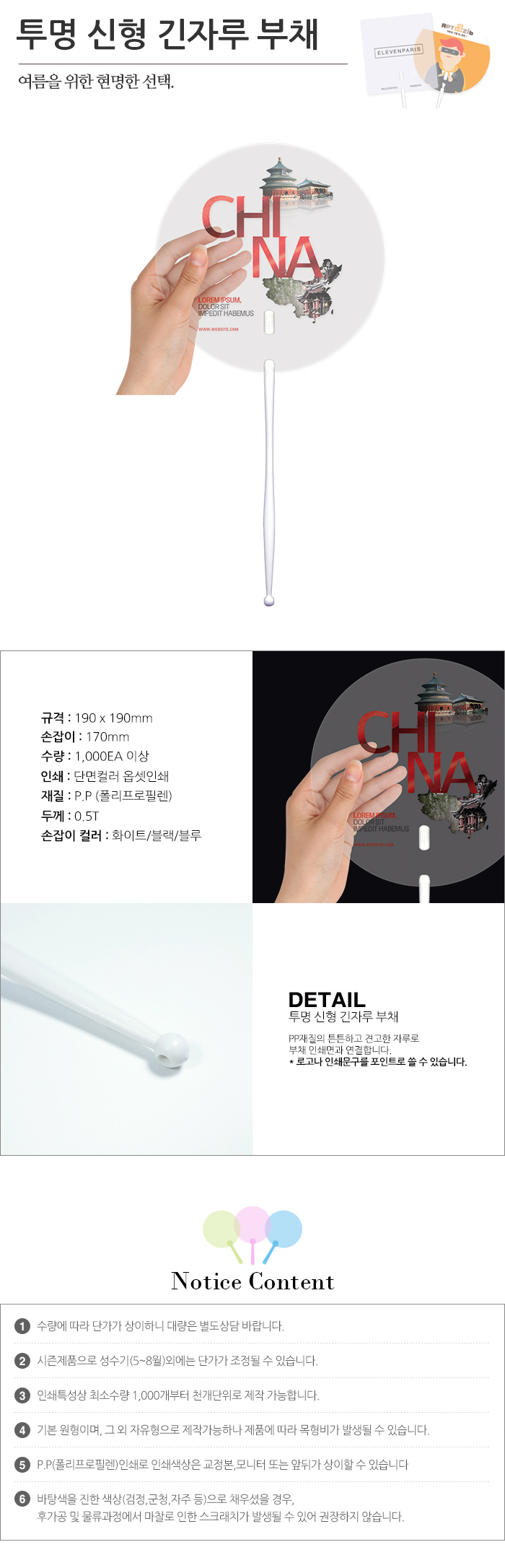 투명 신형긴자루부채(원형)