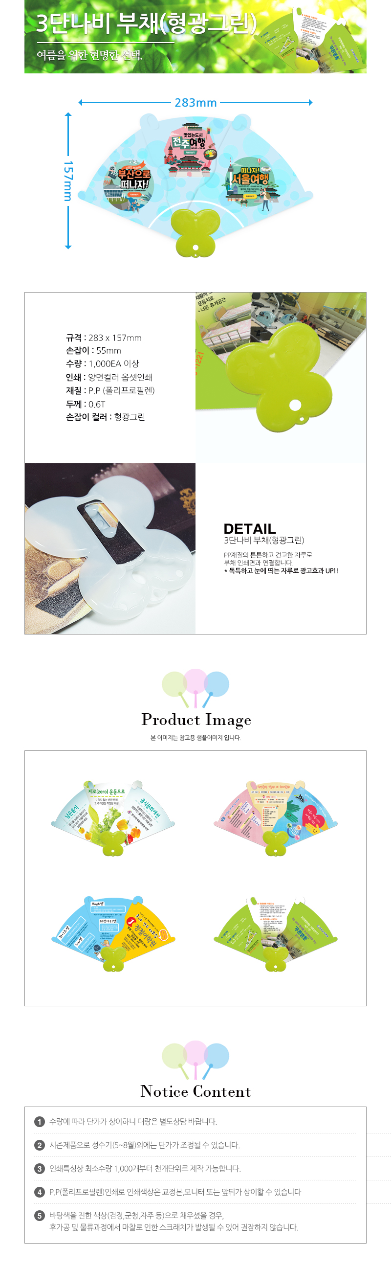 3단 나비부채(형광그린)