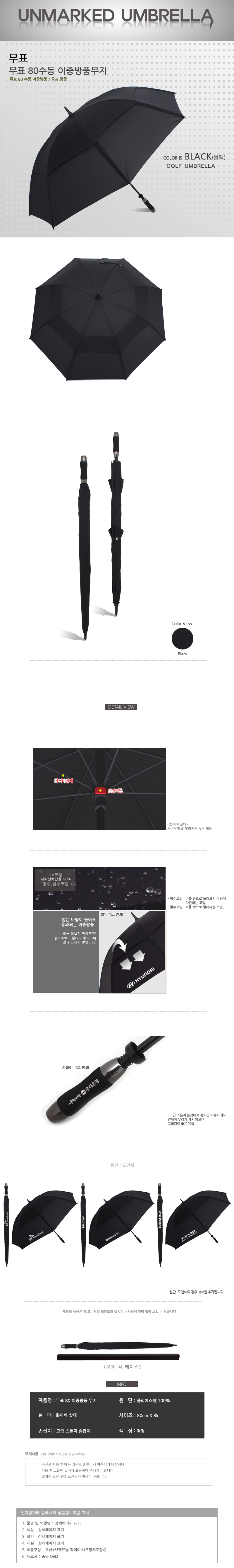 무표 80수동 이중방풍 장우산