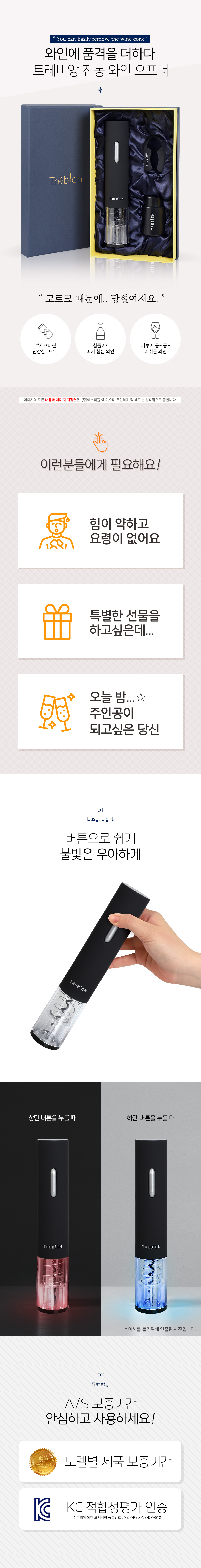 와인병을 쉽게 따기 힘든 여성이나 와인 초보 분들, 나이드신 분들을 위한 탁월한 제품