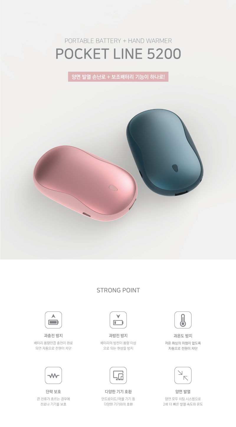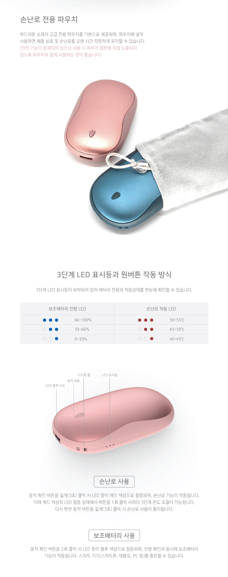 추운 계절 등산, 낚시, 캠핑 등 야외 활동이나 출퇴근 시 더욱 따뜻하게 해줄 손난로 겸용 보조배터리입니다.
