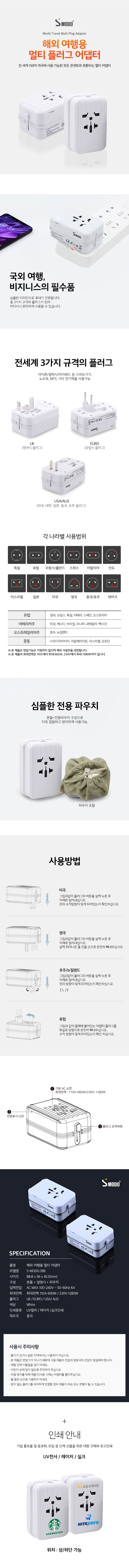 3개의 멀티잭으로 전종 스마트폰 충전 및 데이터전송가능 (UK-영국식, EURO-유럽식, USA/AUS-미국,대만,일본,중국,호주)
