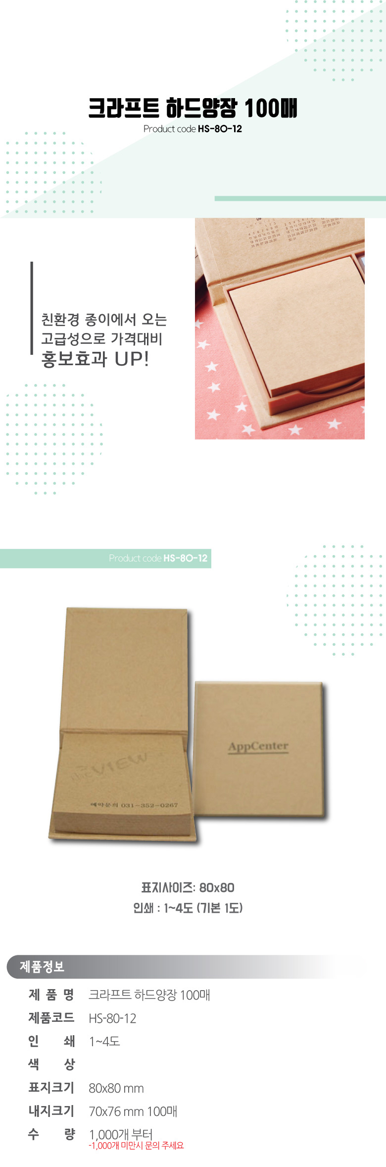 크라프트 하드양장 점착메모지 100매 HS-80-12