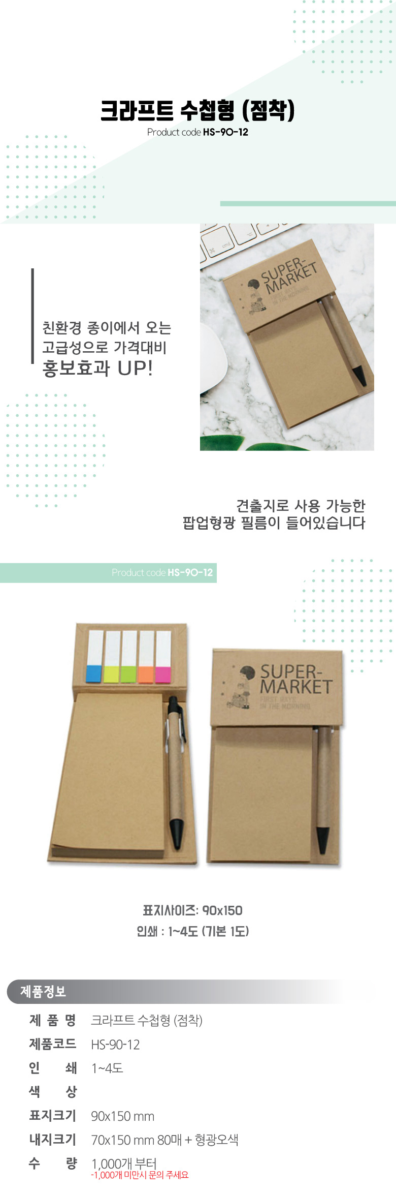 크라프트 수첩형 점착메모지 80매 HS-90-12