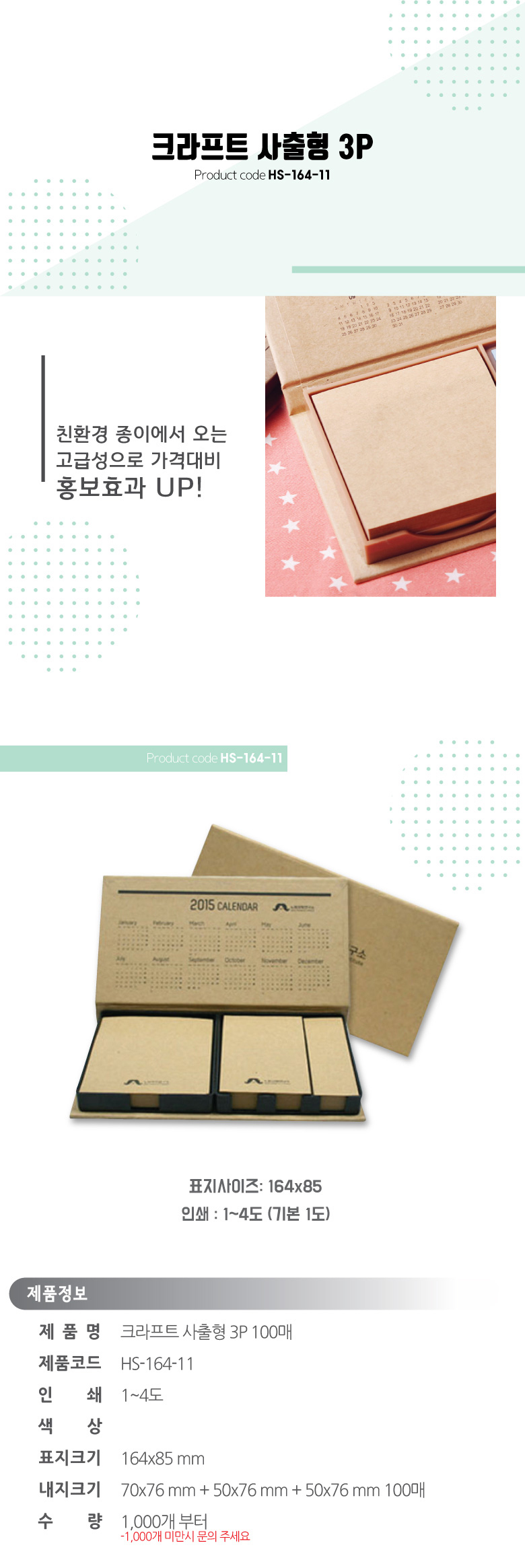 크라프트 사출형 포스트잇 3P 100매 HS-164-11
