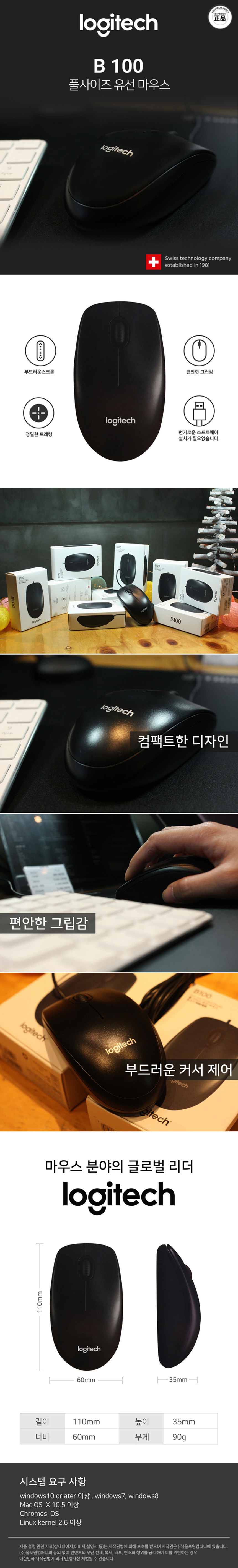 로지텍 유선마우스 B100