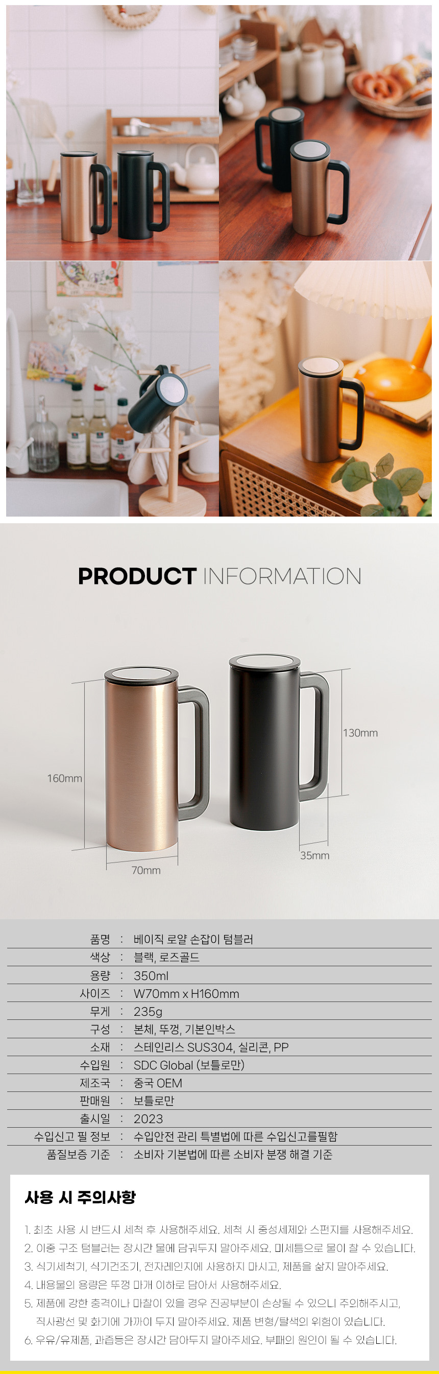 상품 이미지: 베이직 로얄 손잡이 텀블러 350ml