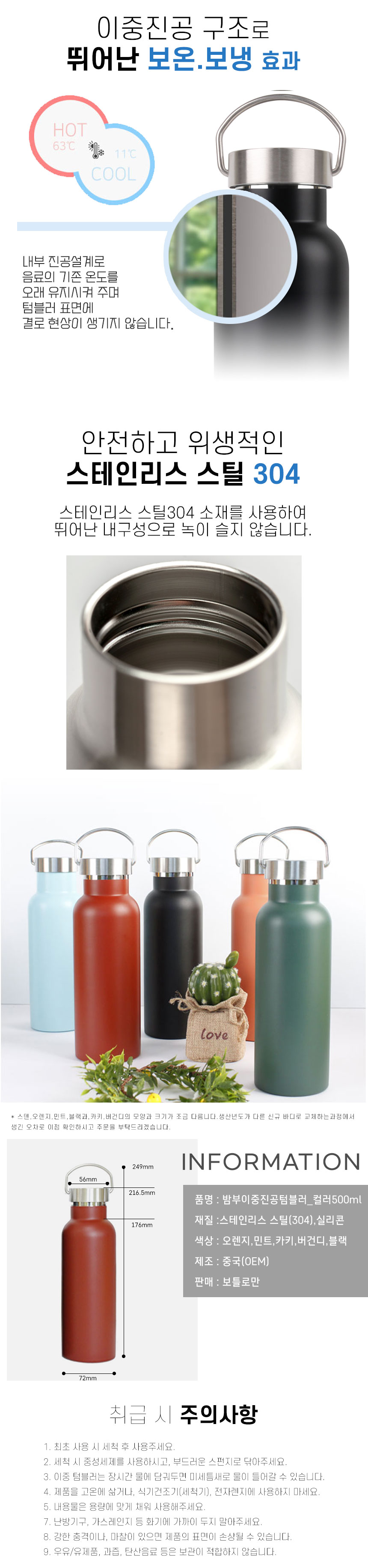 상품 이미지: 밤부 이중진공 컬러 텀블러 500ml