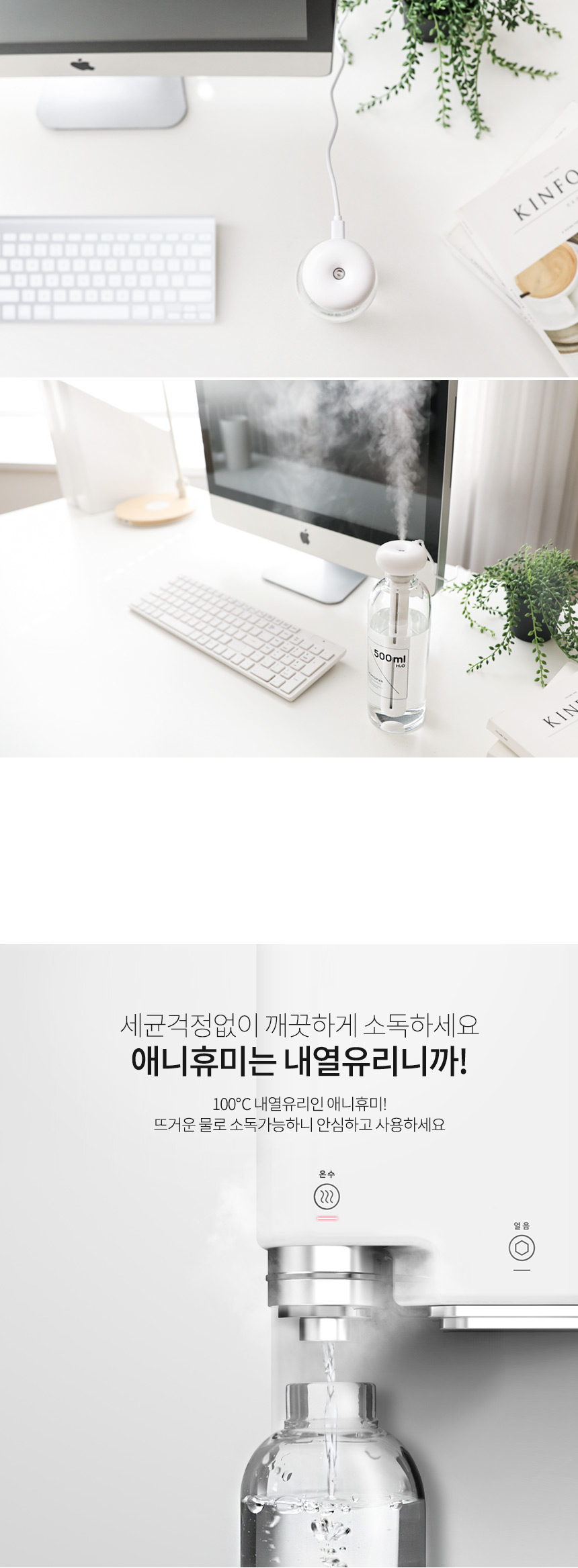 내열유리로 소독까지 가능한 깨끗한 가습기 애니휴미 / 조립형 본체로 어디서나 길게 짧게 사용가능.