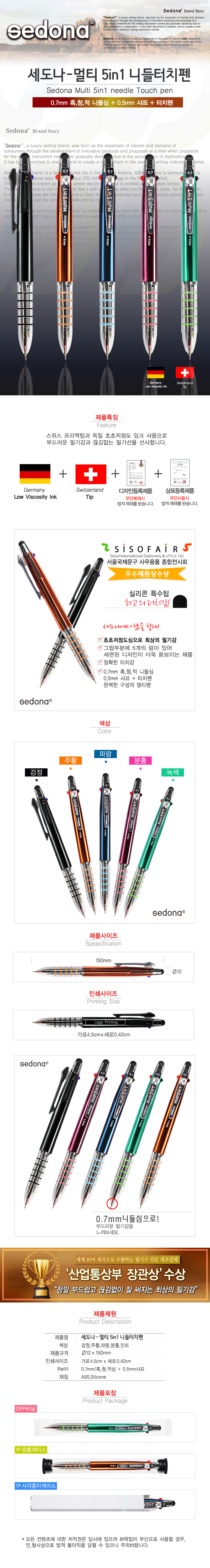 세도나 멀티5in1 니들터치펜