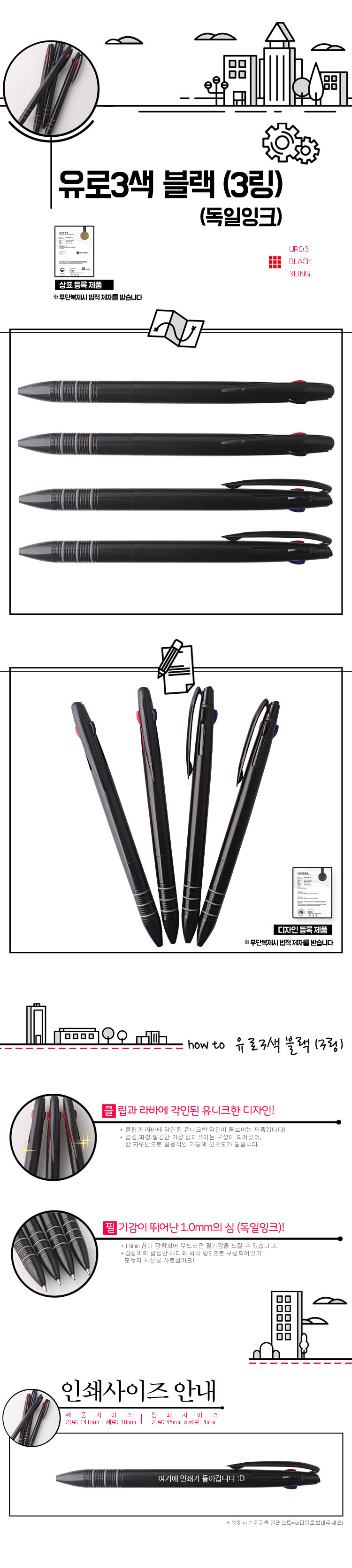 유로3색 블랙3링볼펜(독일잉크)