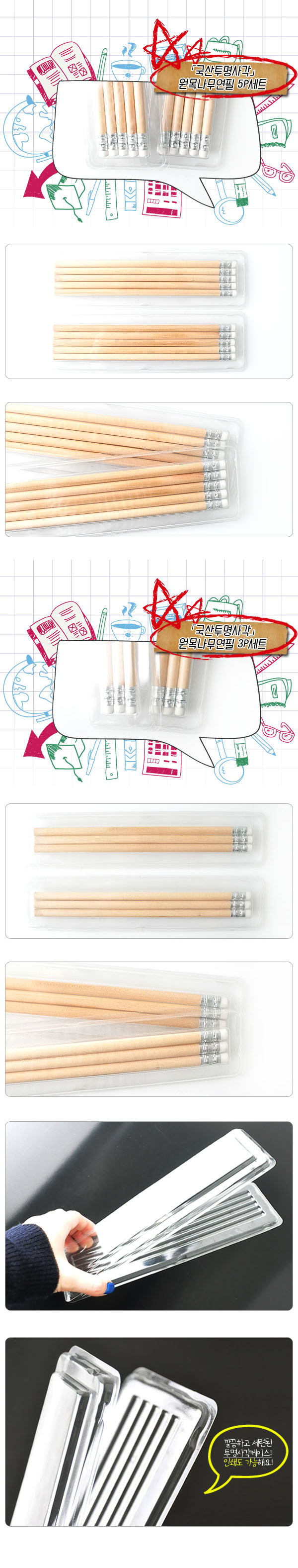 투명사각 원목나무연필세트(3p/5p)