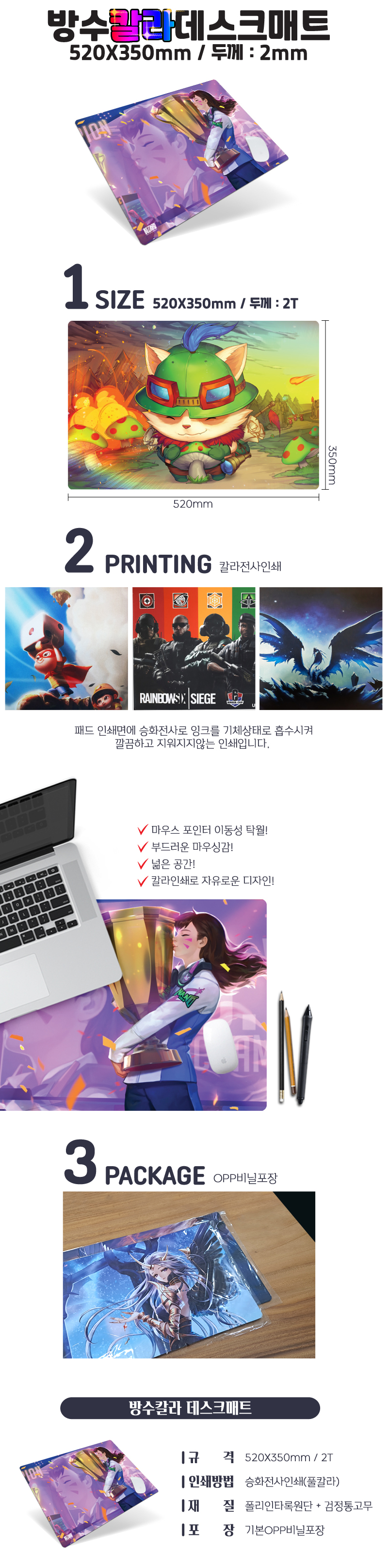 천연고무칼라 데스크매트 2T(520*350/600*350)