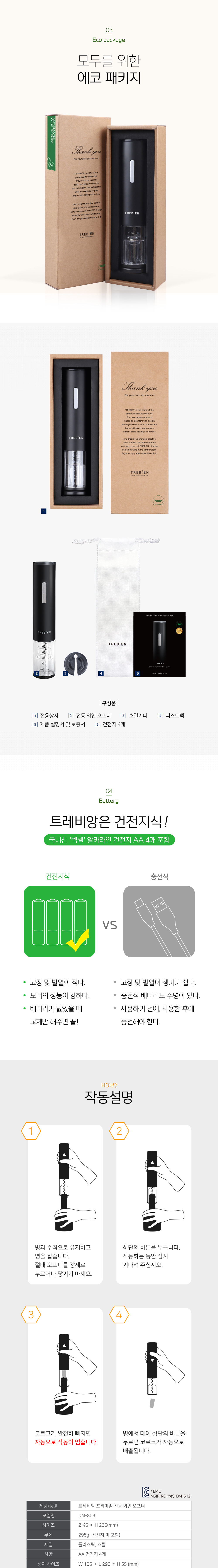 전동오프너(AA건전지 4개 별도), 호일커터, 선물상자, 한글설명서, 보관용 더스트백