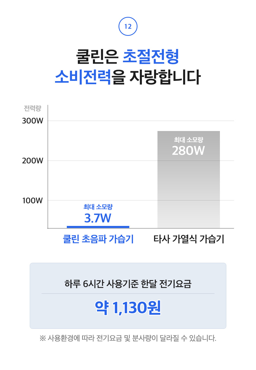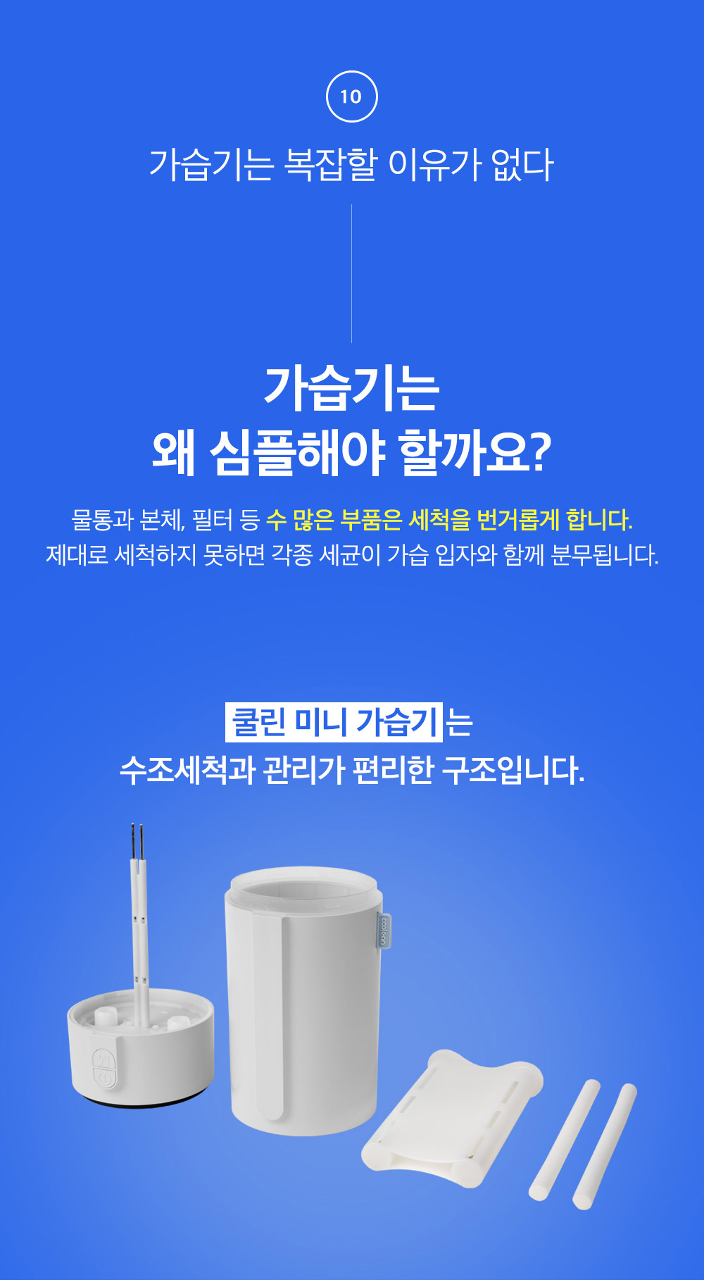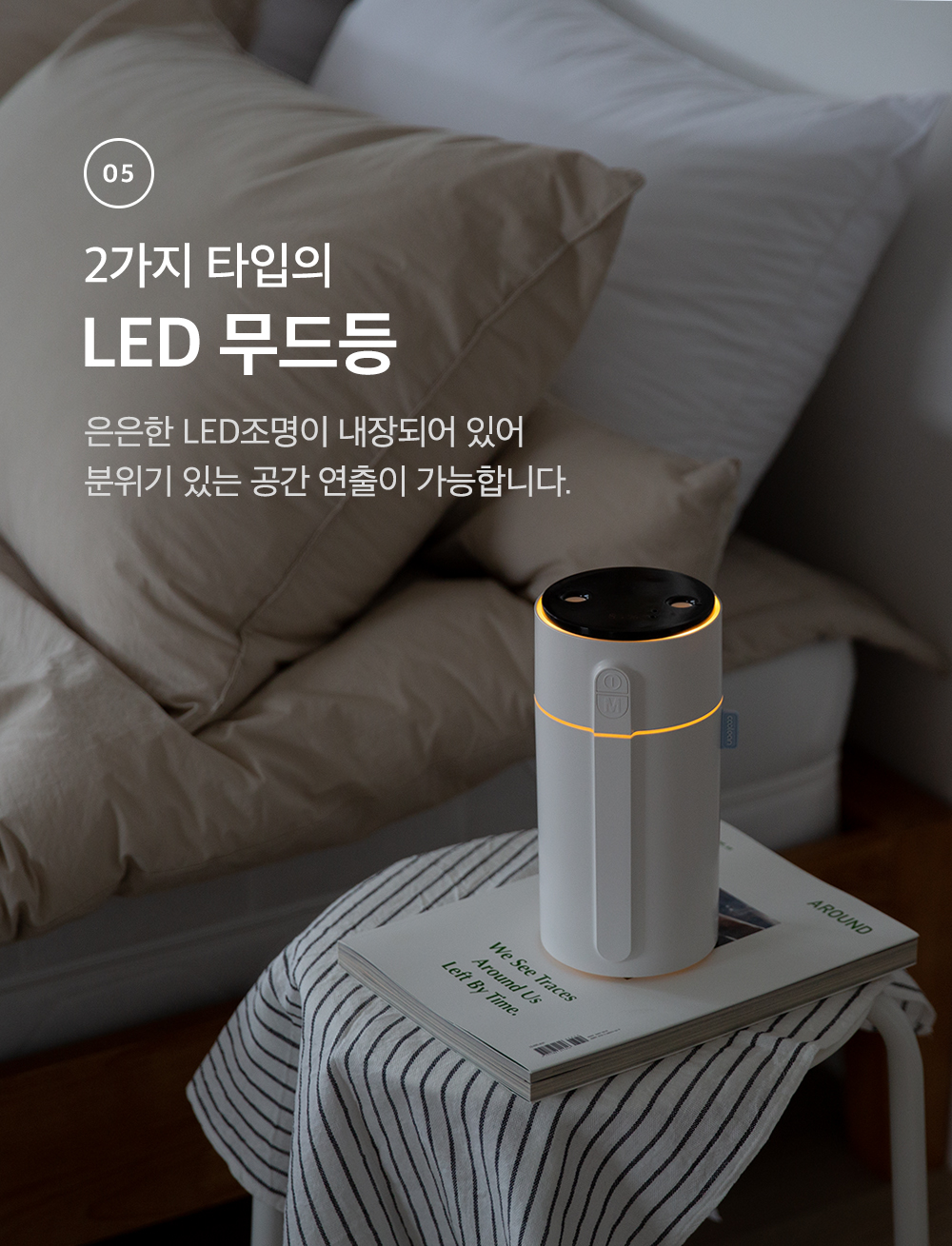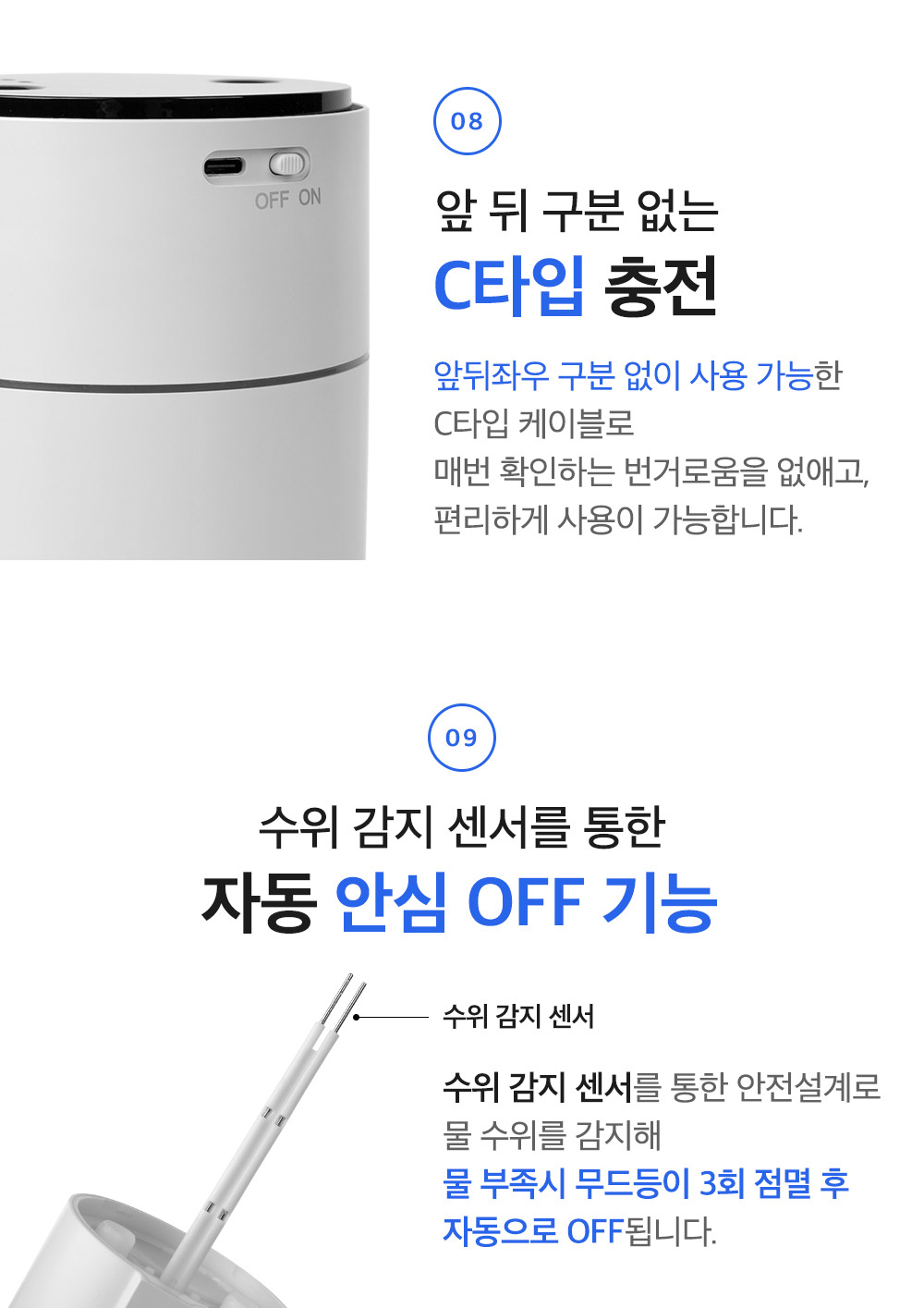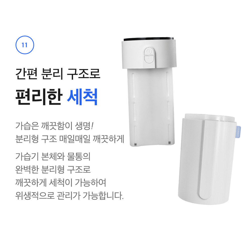 수위 감지 센서 탑재 : 물 부족시 무드등이 3회 점멸 후 자동으로 OFF / 간편한 분리세척
