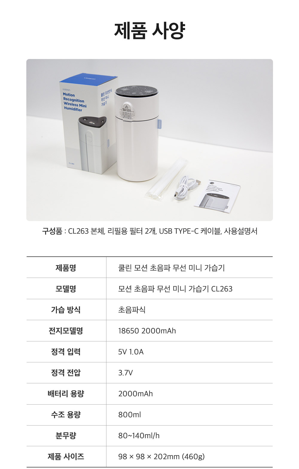 상품 이미지: 쿨린 모션센서 초음파 무선가습기 263