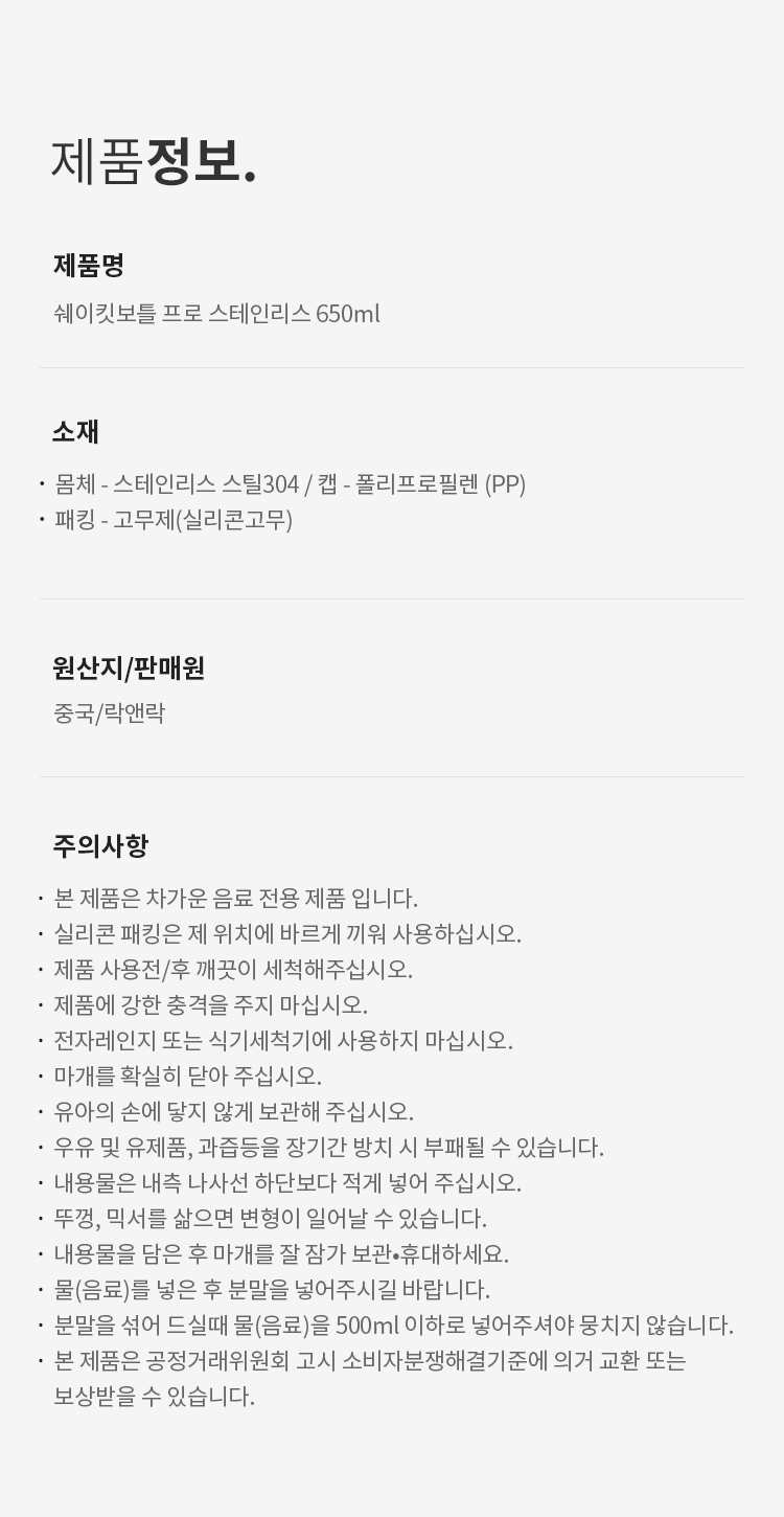 상품 이미지: 쉐이킷보틀 프로 스테인리스 650ml