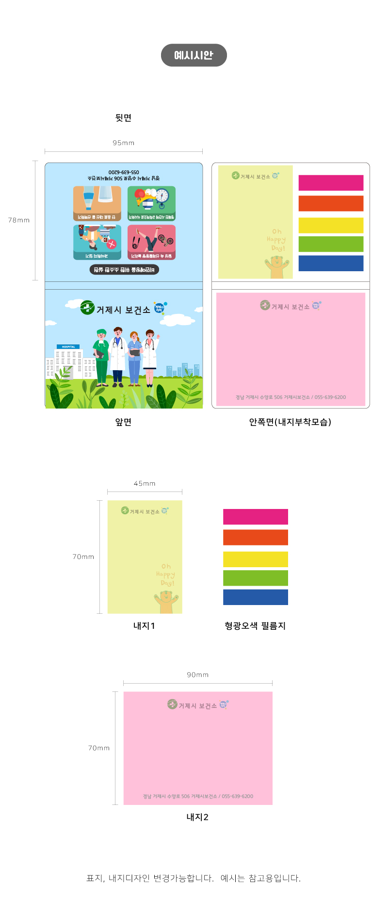 95*78mm(표지)/①45*70mm/②90*70mm(내지)/형광필름지20매(고정)