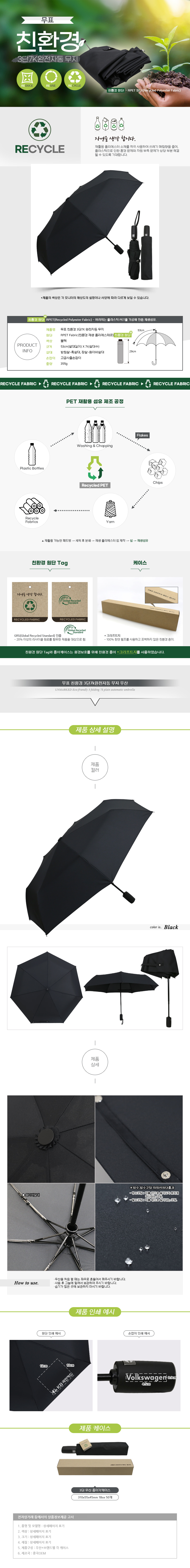 무표 친환경 3단7K 완전자동우산
