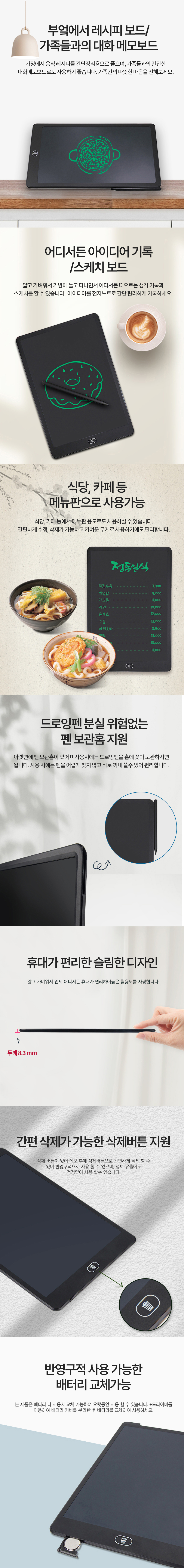반영구적 사용가능한 배터리 교체 / 삭제 버튼 지원 / 펜 보관홈 지원 / 슬림한 디자인