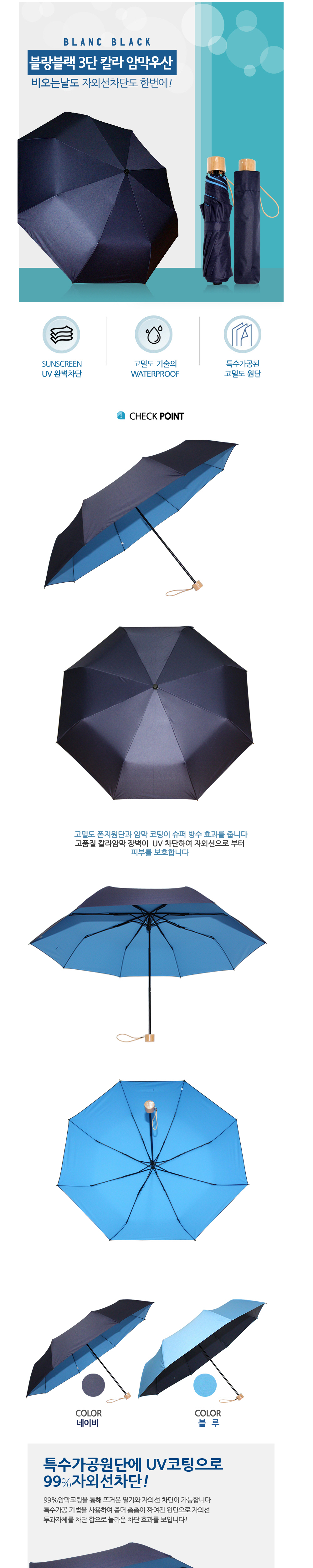 블랑블랙 3단 칼라 암막 우양산