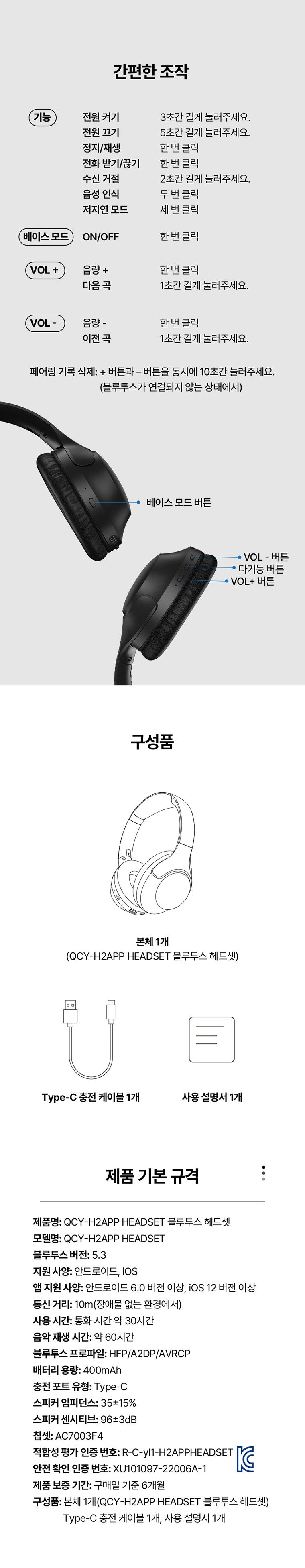 상품 이미지: QCY 블루투스헤드셋 H2APP
