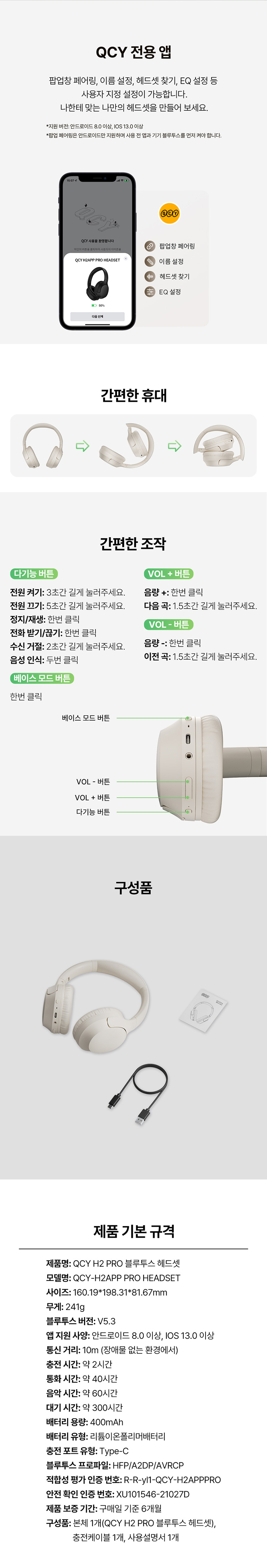 상품 이미지: QCY PRO 블루투스헤드셋  H2APP