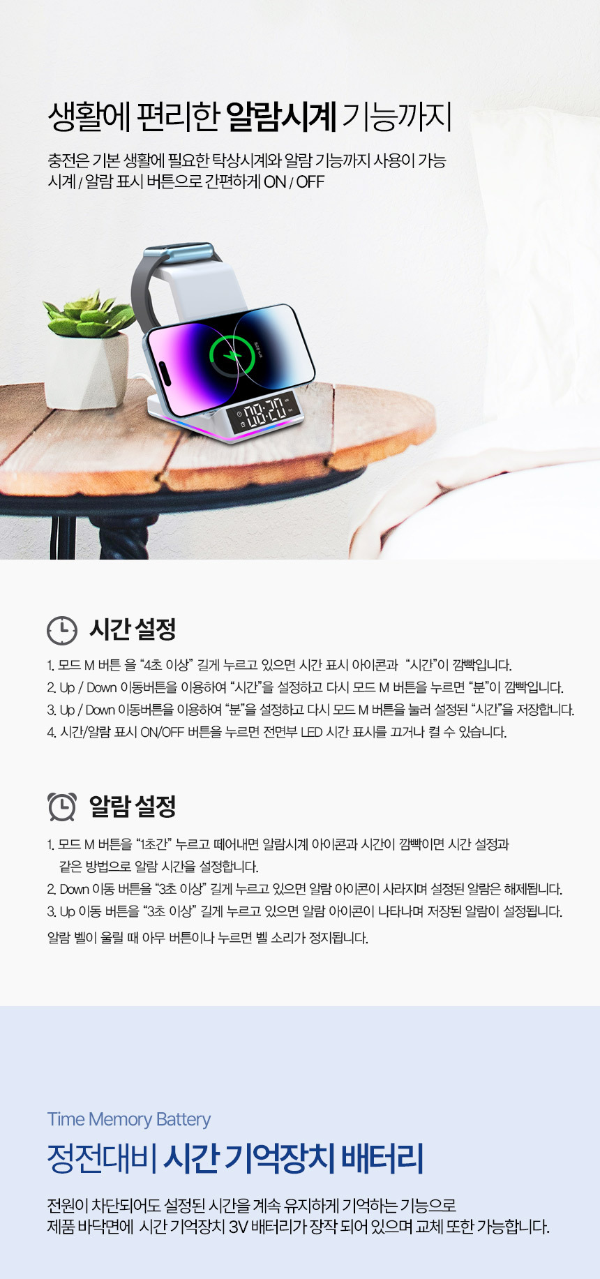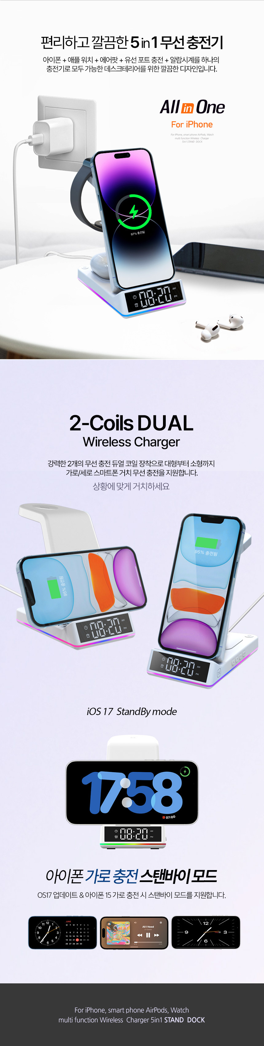 상품 이미지: 5in1 무선충전 거치알람시계(애플전용)