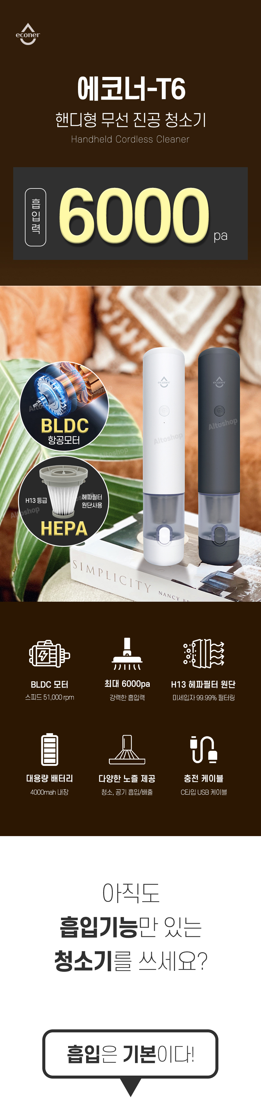 상품 이미지: 에코너 핸디형 무선진공청소기 T6