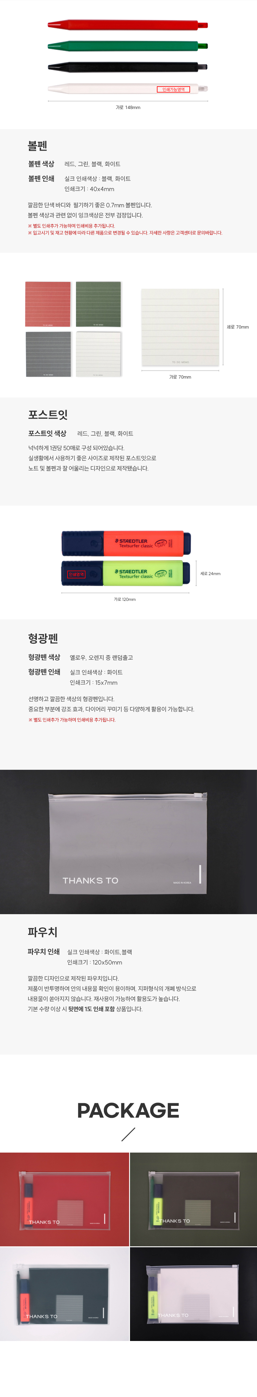 파우치 인쇄포함 /노트_볼펜_형광펜 인쇄비 각 200원 추가