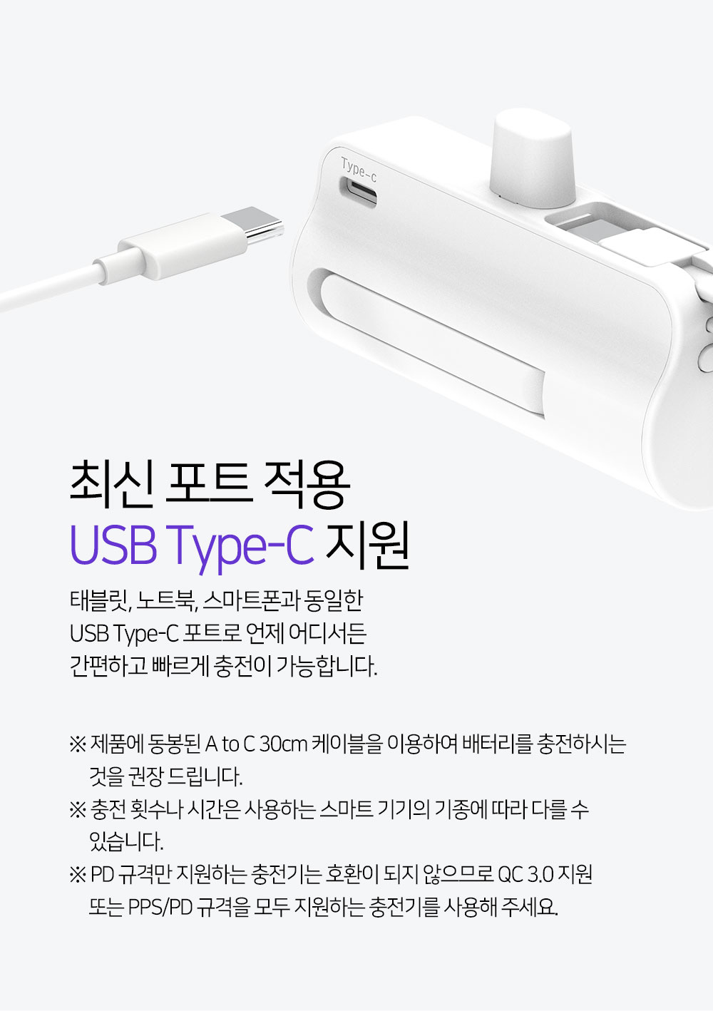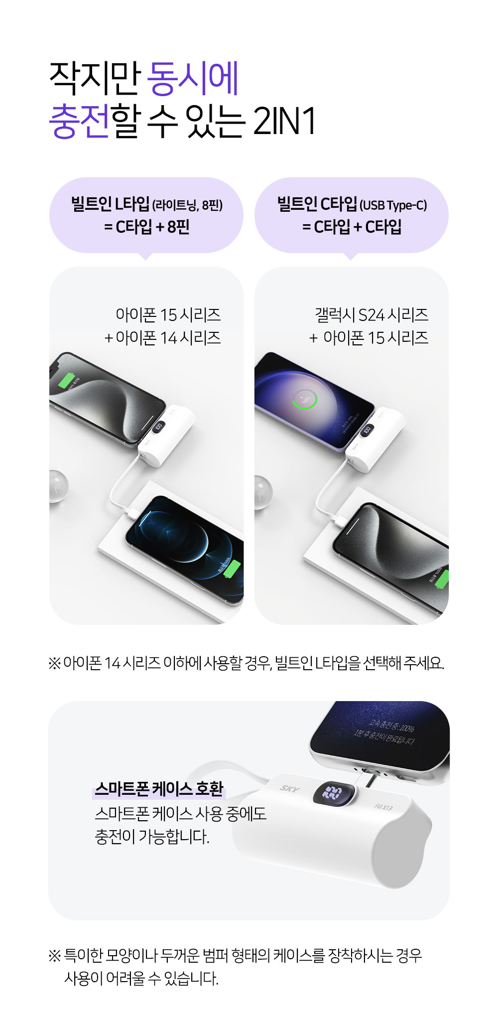 작지만 동시에 충전할 수 있는 2in1 / 94g의 작고 가벼운 디자인 / 안정적 가로모드 킥스탠드 적용