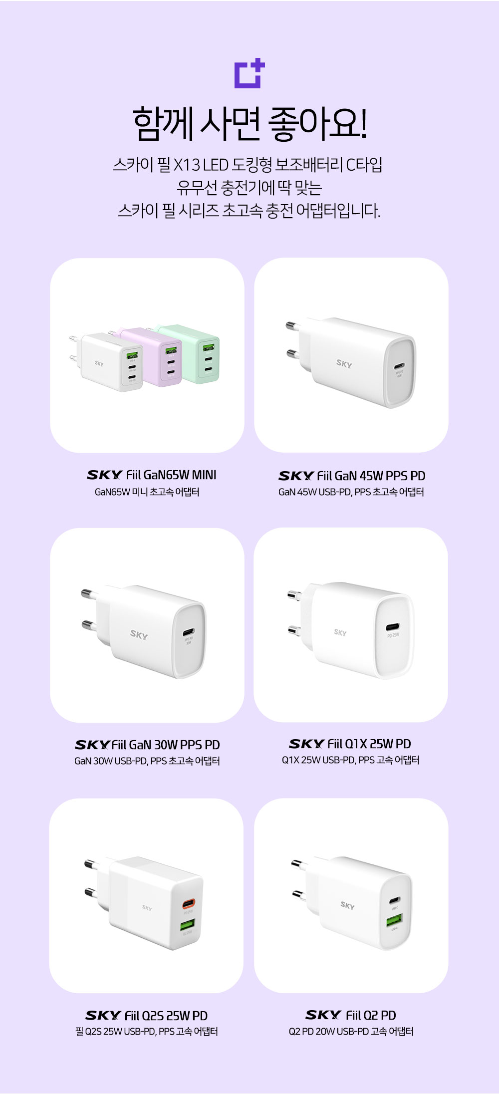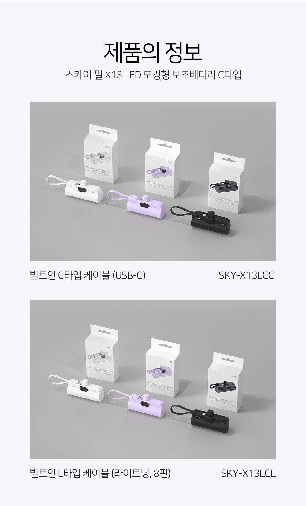 스카이 필 X13 LED 도킹형 보조배터리 5000mAh