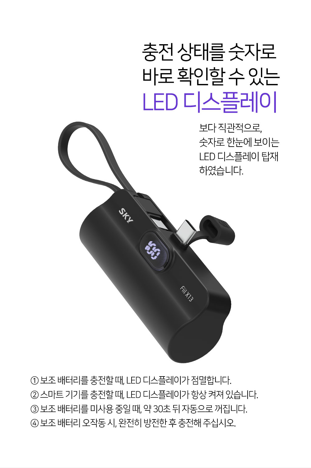 커넥터 파손 방지 커버 디자인 / 충전상태 확인 가능한 LED 디스플레이