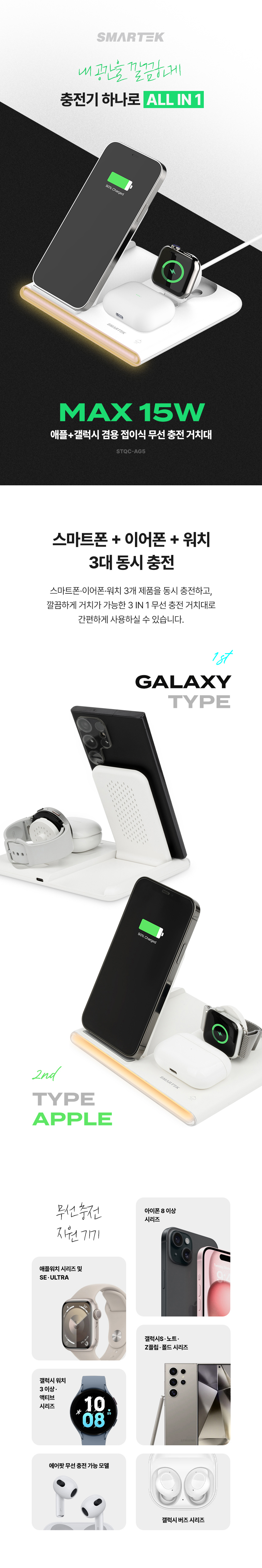 스마텍 MAX 15W 애플+갤럭시 겸용 접이식 무선충전거치대 STQC-AG5