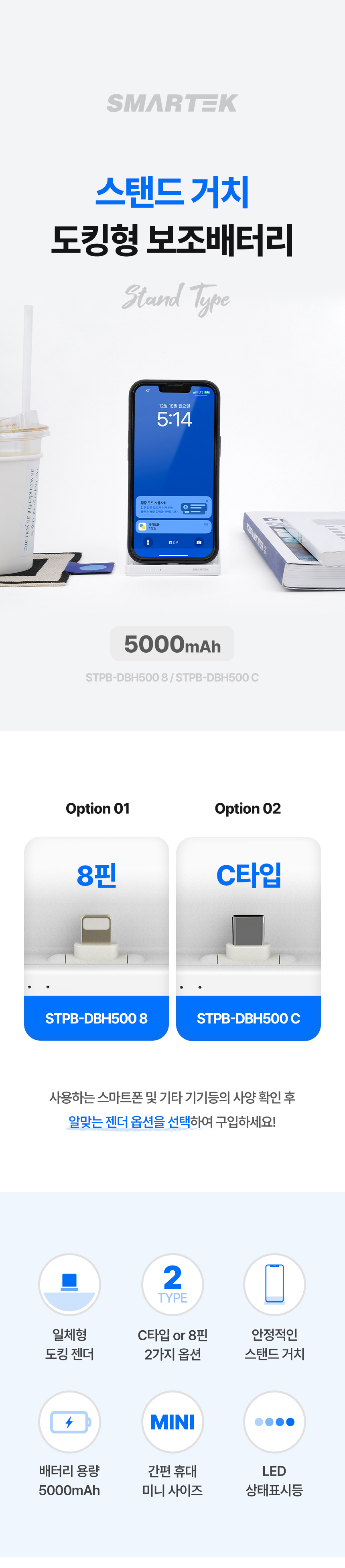 스탠드거치 도킹형보조배터리 5,000mAh STPB-DBH5000
