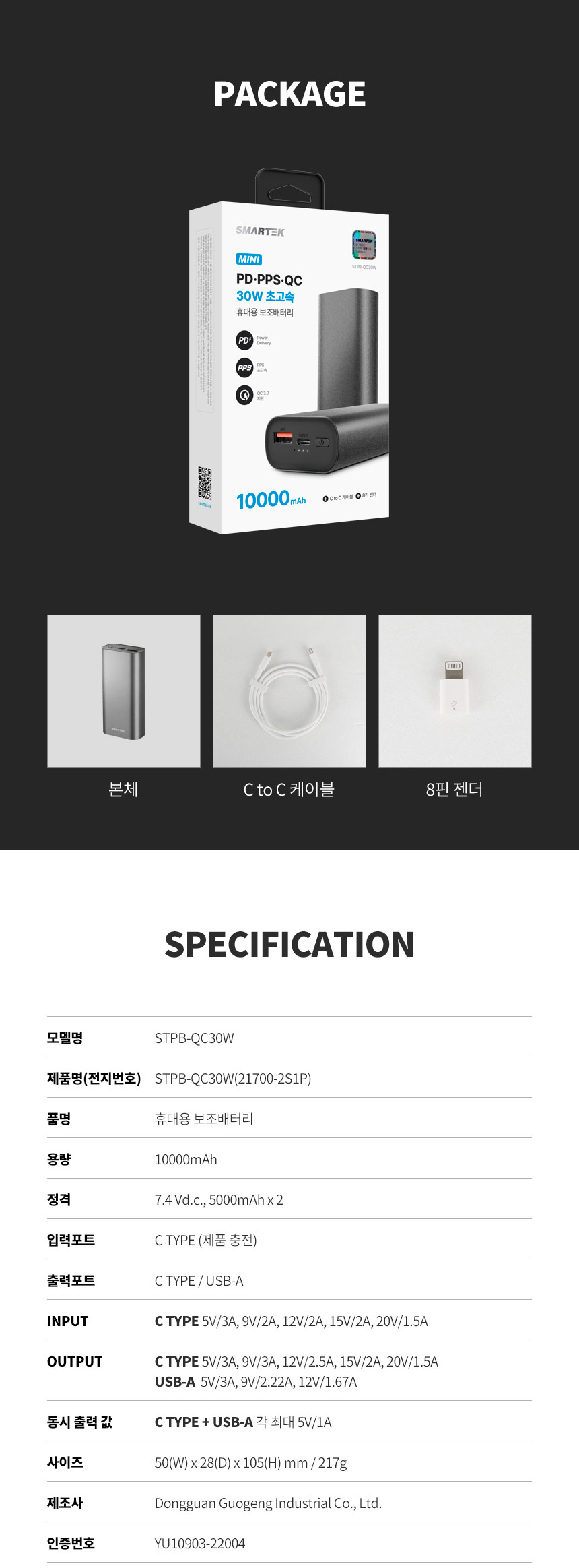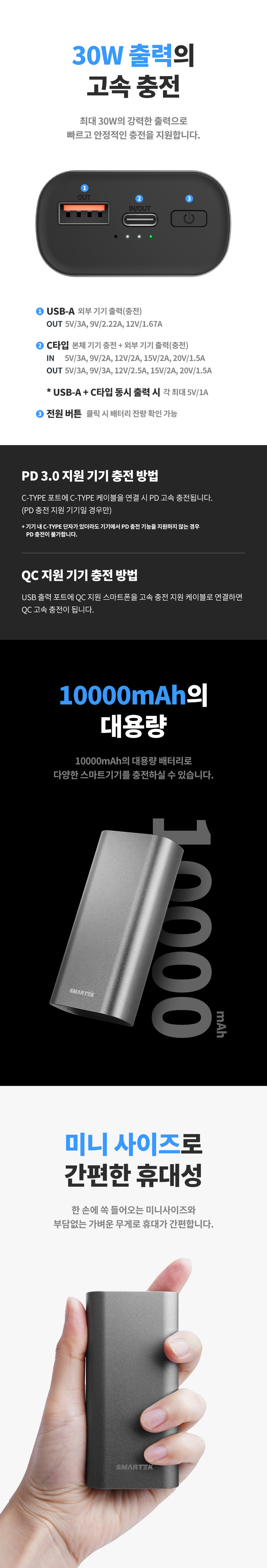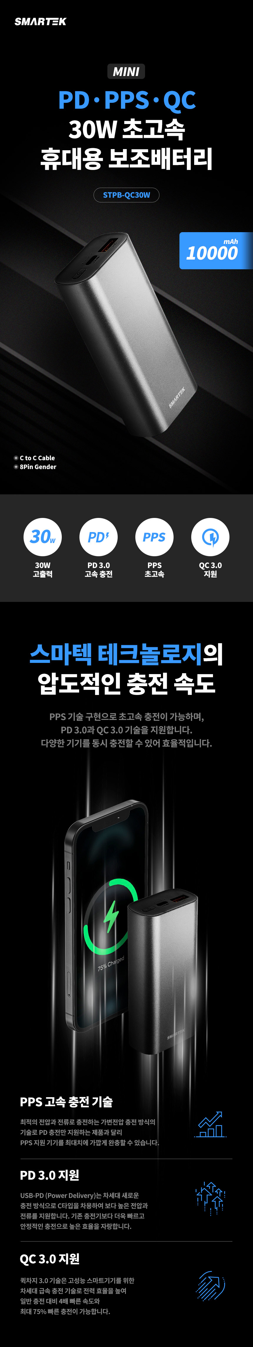 스마텍 30W 고속충전 보조배터리 10000mAh STPB- QC30W