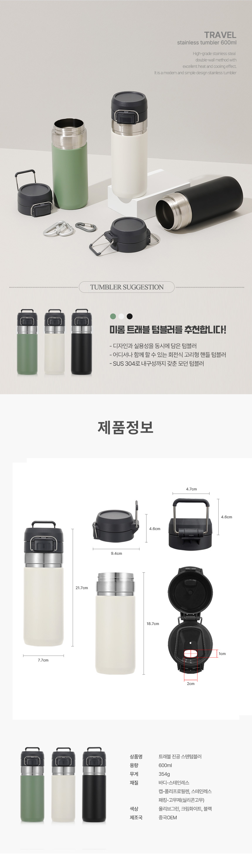 상품 이미지: 미롬 트래블 진공 스텐텀블러 600ml
