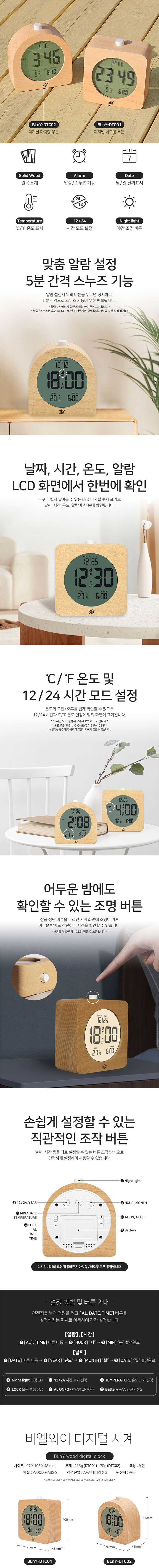 비엘와이 디지털 알람 온도 날짜 시계 BLnY-DTC